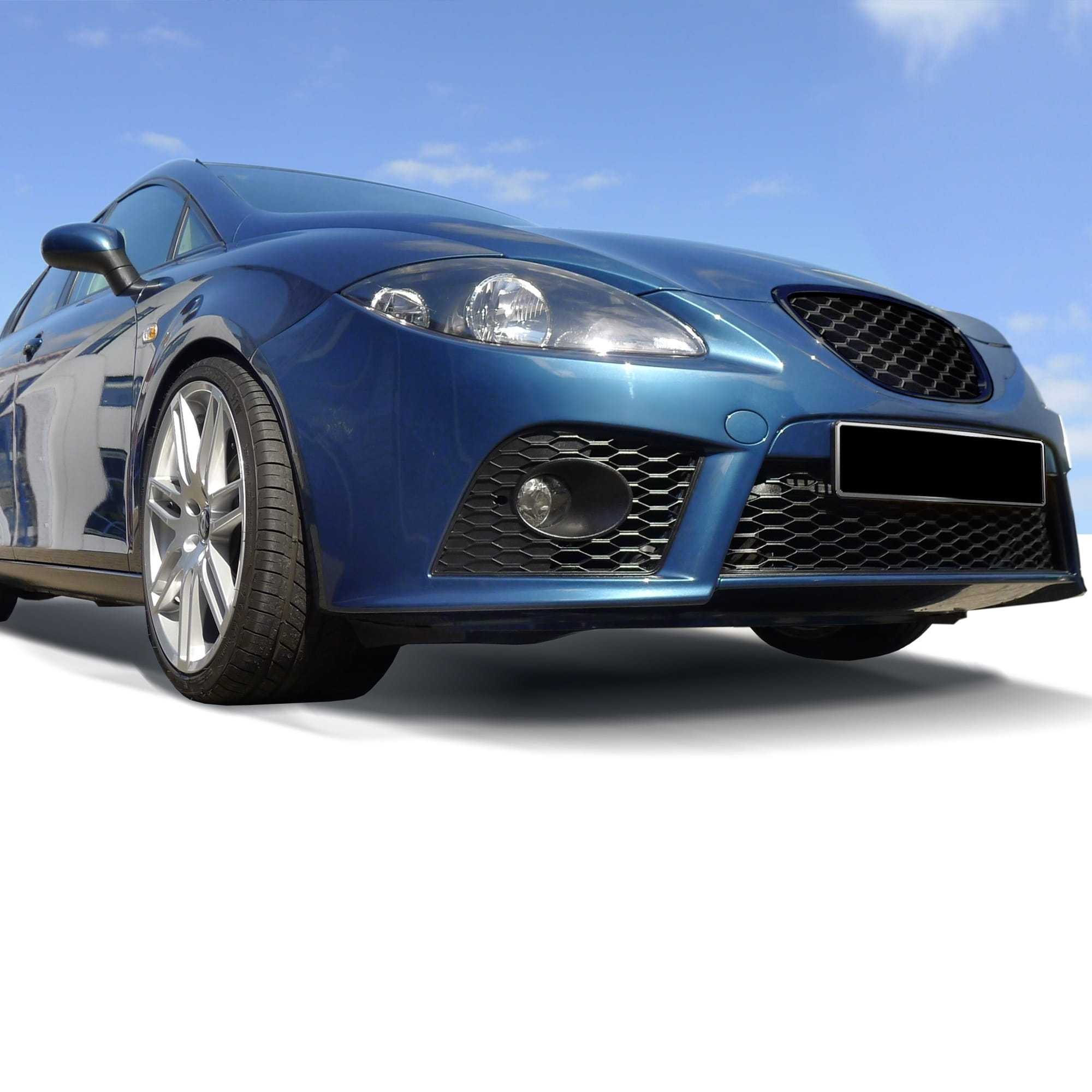 Sportowy zderzak przedni Seat Leon 1P 05-09r. (Tuningowy, komplet z kratkami, i zaślepką haka holowniczego )